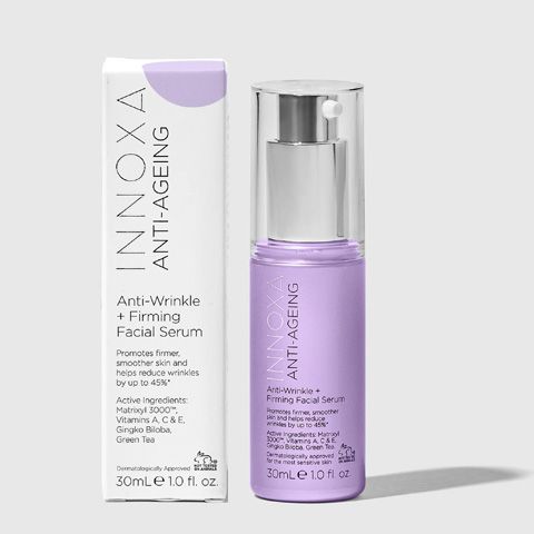 Innoxa's Anti-Wrinkle + Firming Facial Serum is especially formulated with anti-ageing ingredients to promote firmer, smoother skin.