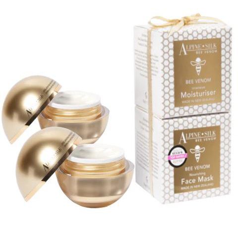 Alpine Silk Nourishing Bee Venom Face Mask with New Zealand Manuka Honey, Collagen, Vitamins A & E. This nourishing mask can help relieve tired skin from daily stress. Bee Venom and Manuka Honey encourage the stimulation of the facial muscles to tighten and firm your skin
